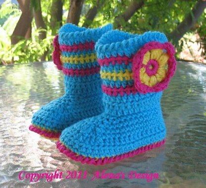 Crocheted flowers and contrasting color patterns make this booties look cute and adorable while keeping your child’s feet nice and toasty. Also, the pattern is double soled for comfort, and has complete toe reinforcement to help them retain their charming shape and durability.