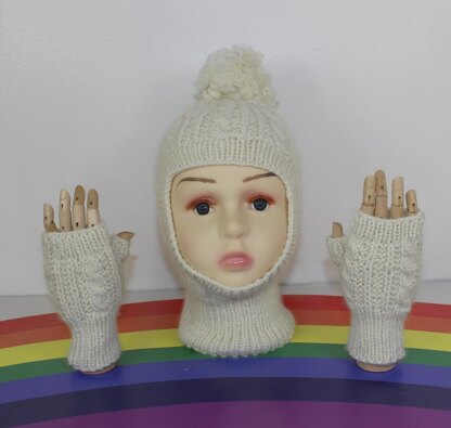 Toddler Child Aran Cable Bobble Balaclava & Gloves