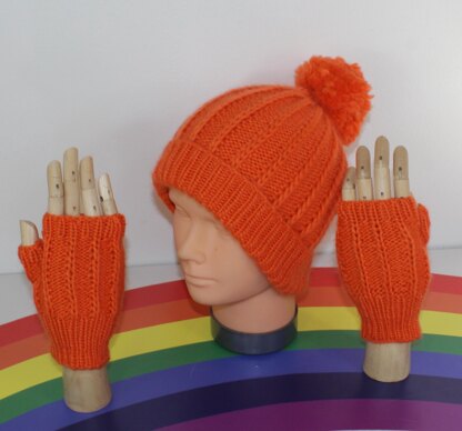 Toddler & Child Aran Fishermans Rib Bobble Beanie & Gloves CIRCULAR