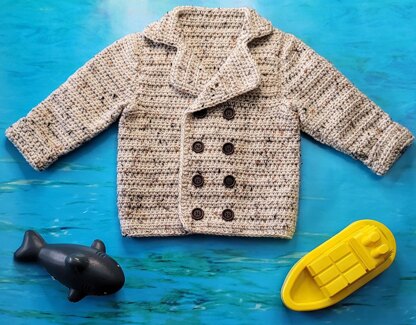 Your little man (or lady) will be so stylish wearing this pea coat this winter. Make him (or her) this adorable double-breasted cardigan styled after the traditional pea coat with 2 rows of buttons on the front. This crochet pattern includes detailed instructions and step-by-step photos to crochet this adorable unisex pea coat in toddler sizes 1, 2, and 3. Use worsted weight yarn in your favorite color and a size F hook for size 1, size G hook for size 2, and size H hook for size 3. It's so quick and easy, you can make a few different colors before fall.