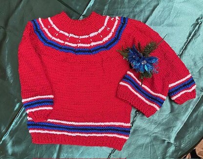Knitted top down . Not circular. If you want to knit circular you can do it, the model will match.