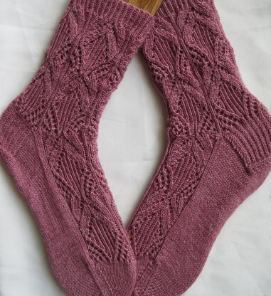 Skill Level: Intermediate (assuming a basic knowledge of knitting and purling, lace knitting, and experience with sock knitting.