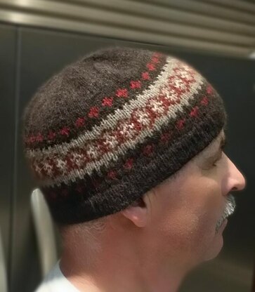 I designed this hat for my husband. He is a construction worker, and requested a hat that had a snug fit...so that he could wear it under his Hard Hat. He also requested a hat using 'MAN COLORS'... :-D!!