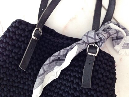 Diese Tasche ist ideal, wenn du gerade nichts besseres auf den Nadeln hast oder vielleicht ein schnelles und garantiert erfolgreiches Projekt zwischendurch erledigen möchtest, schnapp dir zwei Knäuel schwarzes Textilgarn, eine dicke Häkelnadel und leg los.