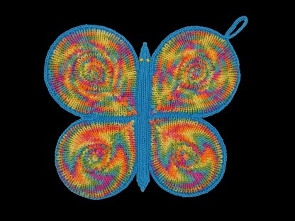 Dies ist eine Anleitung zur Herstellung eines gestrickten Topflappens (Farben Türkis, Orange, Gelb und Bunt) in Form und Aussehen eines Schmetterlings. Es wird Schritt für Schritt erklärt. Die Vorder- und Rückseite sehen unterschiedlich aus und werden nach teilweise anderem Muster gestrickt. Jede Seite wird in der Anleitung ausführlich beschrieben. Das fertige Erzeugnis ist angenehm weich und schön dick.
