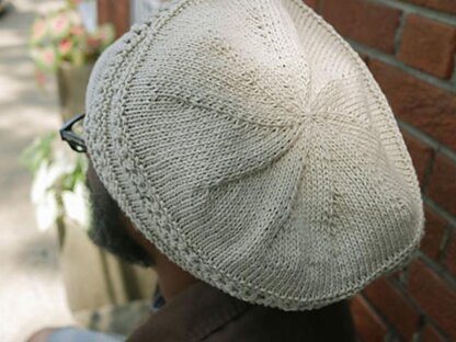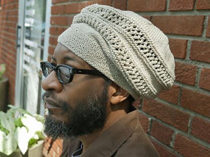 A soft, slouchy cap in five sizes (XS/S/M/L/XL), with bands of airy openwork that provide texture as well as a little ventilation in temperate weather. Worked completely in the round, the garter stitch brim offers a snug fit below to keep the cap in place, but gives way to softly slumping volume above for tucking up long hair; length is easily adjusted if desired. Substituting yarn and/or needles may result in an overall variation in size and elasticity.