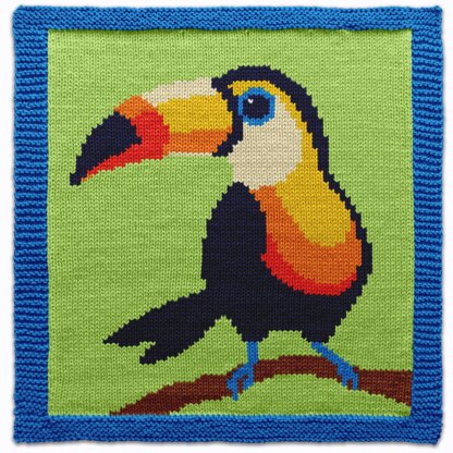 Knit a splash of rainforest magic with this bold Toucan Square Knitting Pattern! Inspired by the colorful world of tropical birds like the toucan, fruit-eater, and hornbill, this vivid design bursts with exotic charm — from its oversized beak to its rainbow feathers. Worked flat with a tidy garter stitch border framing the smooth stockinette center, this cheerful square is perfect for jungle-themed baby blankets, kids’ pillows, wall hangings, or even as a vibrant motif on an oversized sweater or a roomy market tote.