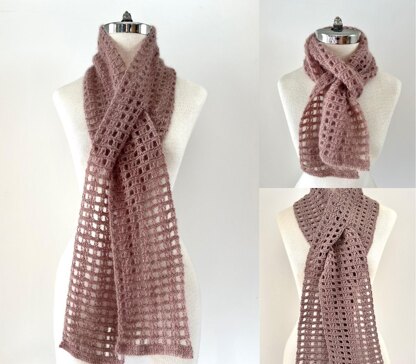 The Touch of Lace Scarf is designed by Valerie Baber just for you to warm your day with style. Designed using sock/fingering weight yarn or 2 strands of lace weight yarn. This scarf is perfect for any time of the year by changing the fibers used from merino wool, kid mohair, alpaca and other warmer fibers for the fall and winter to lighter fibers like cotton, silk, linen etc. for spring and summer. A very versatile scarf design that you will wear for years to come. Also available in a larger shawl/scarf version on my other listings.
