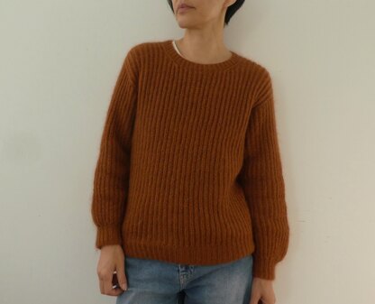 The body is worked from the bottom up in the round to the underarms and the upper front and back are worked separately back and forth. The sleeves are worked from the top down, from stitches picked up around the armhole.