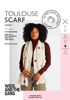 Toulouse Scarf in Wool and the Gang Alpachino - V130530812 - Leaflet is a Intermediate Knitting pattern by Wool and the Gang, available as a Leaflet and includes instructions in English. Super fun to make, this pattern could be your next masterpiece!