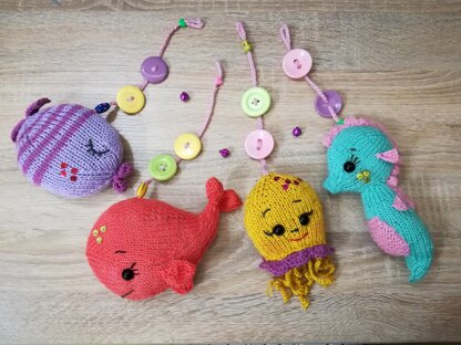 Toy knitting patterns - Knit a Sea dwellers toys for baby mobile