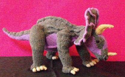 Spring is here and all my toy dinosaurs are having babies. Here we have Tracy Triceratops proudly showing off her new baby. The Tracy Triceratops and Baby knitting pattern provides full instructions to knit both of these amazing creatures.