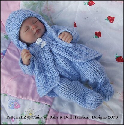 Knitting pattern for a traditional coat, leggings, bonnet or hat, and shawl to fit a 7-12 inch long doll. Real baby clothes for dolls! It is also suitable for really early preemies.