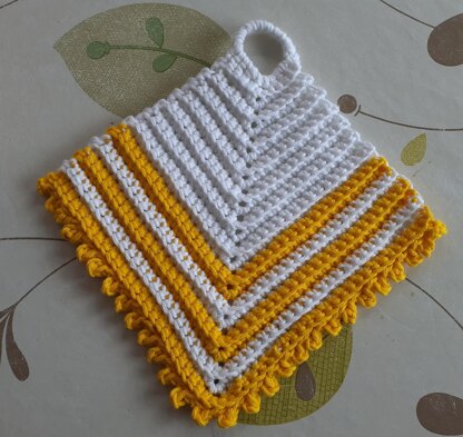 This simple potholder pattern was passed down to me by my mother. Potholder are decorative in any kitchen. - Dieses einfache Topflappenmuster wurde mir von meiner Mutter weitergegeben. Topflappen sind eine Zierde für jede Küche.