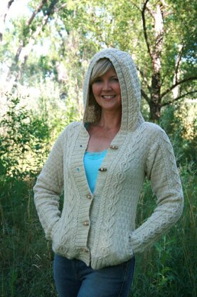 The Trail Hoodie is ideal for winter luxury. Made out of yarn that is the perfect partnering of Pure Yak Down and Super Fine Merino fiber, this hoodie will be both wonderful for the knitter to make and wear. The comfortable, classic shape is enhanced by detailed cables and a broken rib stitch throughout the piece. The added hood and pockets are the little details that will make this jacket a must have for any wardrobe. Here is texture and technique at its best!