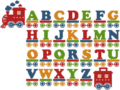 This counted cross stitch pattern of an easy to stitch Train Alphabet design was created from beautiful Artwork copyright of Joni Prittie. Only full cross stitches are used in this pattern. It is a black and white symbol pattern. 5 DMC Colours are used.