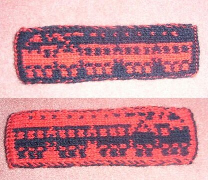Choo chooo goes this little train... It's a reversible bookmark done in double knitting.