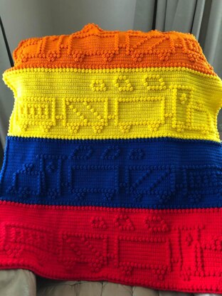 Made in one piece no sewing or joining. 2 simple stitches single crochet and popcorn or bobble This is in graph form Printable from home with * Large Easy view pages and one page computer view both are counted out for you. Suggested yarn with color chart and amounts used included with pattern. Finished size : 38 X 43 Charts are Large very easy to see after printing from home and counted.