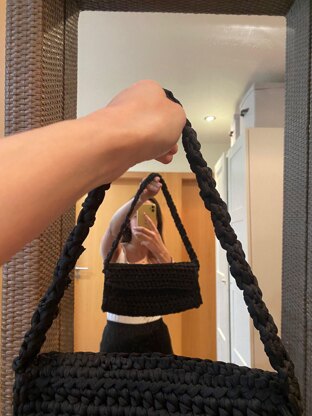 - Materials: • Hook 10mm • Trapilho yarn 80mt and 450gr • 2 magnetic button for bags • Black sewing thread • Needle
