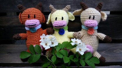 The materials list for these little cows is not super precise, A) because I was traveling and used only stash/leftover yarn, and B) because gauge isn’t super important for this toy.