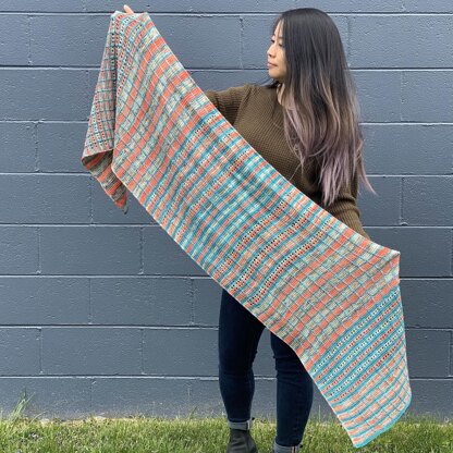 A simple but engaging design that utilizes multiple colors to create lines vertically and horizontally. Use full skeins or mini skeins and scrappy leftovers for a fun wrap shawl to cover your shoulders on chilly spring and summer nights or for transitional weather. Share your projects with me on Instagram using #TravelingLinesWrap and tag me.