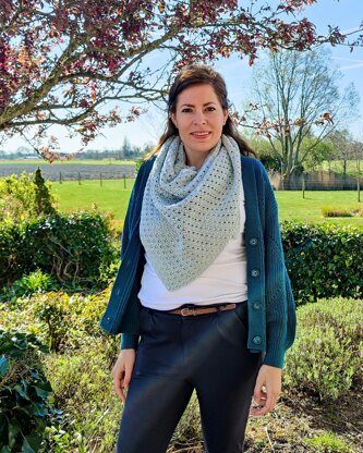 The Traversé shawl is a slightly asymmetrical shawl, which is crocheted from left to right. The crossed double crochets create small diamond-shaped openings in the shawl.