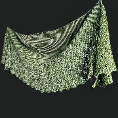 The Tree Line Shawl is knit from the top down and center out. This crescent-shaped shawl uses a combination of two-color brioche rib stitch and an original two-color brioche stitch pattern. This pattern can be easily customized to achieve a desired size.