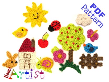 Set Tree crochet applique pattern