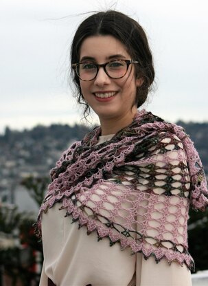 This generously sized crescent-shaped shawl is light and airy thanks to two great Malabrigo Yarns - Lace and Silkpaca. Choose a color combination that speaks to you, and have a go at this shawl with its easy pattern stitch rep and interesting edging. Forge your own graceful gothic/heraldic statement!