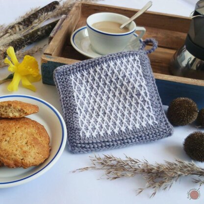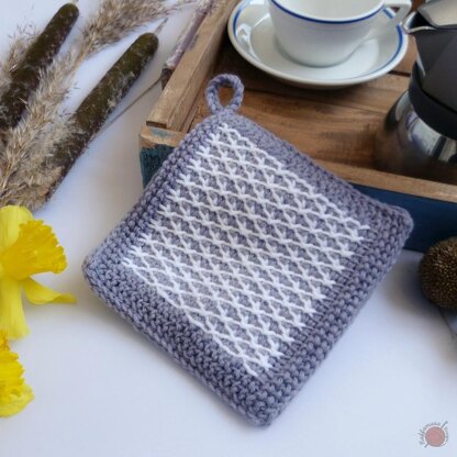 Size The finished Tunisian Crochet Tresca Potholder is a square with a side of approximately 5.5″ (14 cm).