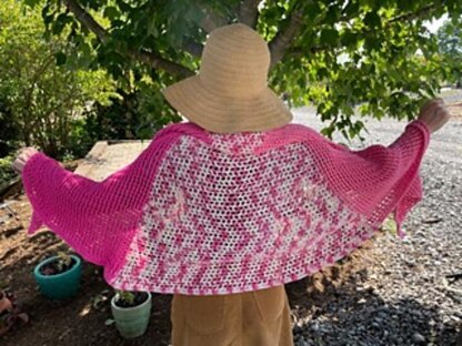 Tri Facet Shawl is a great all seasons wrap. It can be made with almost any yarn to compliment the season, from lightweight to a bulky depending on your style.