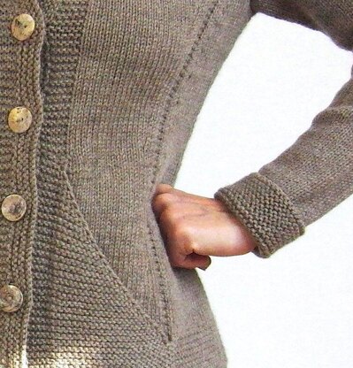 Triangle is a classic knit with set in sleeves and pockets, knit in parts from the bottom up. It is fitted by bust darts and darts in the back as well as waist shaping at the sides. The front band with button holes is worked. Please note: this pattern is written in european style - no row-by-row instructions - and is therefore not recommended for beginners.