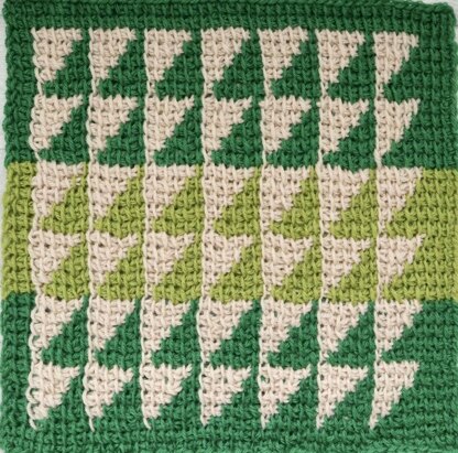 Triangles Square is a great project for those who would like to dip their toes in the world of Tunisian crochet colourwork. The repetitive pattern allows for sufficient practise of the technique creating a beautiful colour effect. You can then let your creativity free creating beautiful colourful patterns.