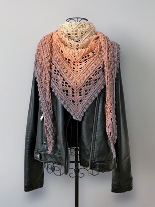 Pattern is available in English and German; the scarf can be crocheted in any size, as the rows repeat.