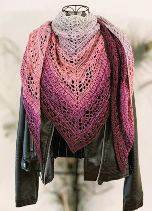 Rhoiteia ist a wonderful, loose and airy symmetric triangular scarf that can be crocheted in any size, as the rows repeat themselves. The pattern includes a written description of each row as well as a chrochet chart.
