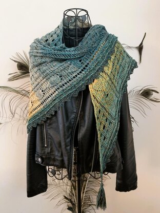 The triangular scarf "Xanthis" is an asymmetric scarf that is crocheted in a special way - the pattern is not crocheted along the rows, but rather from bottom to top. It requires a bit of attention, and is therefore intended for advanced crocheters (beginners might have difficulties).