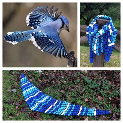 This is one of a series of knit and crochet accessories that are designed to celebrate the beautiful colors and interesting patterns of the birds we see in our own gardens, and also birds from all over the world.