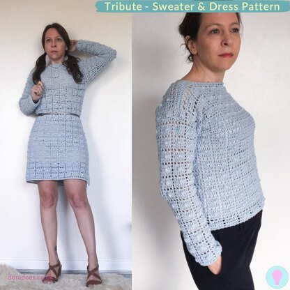 The pattern contains a schematic for both garments, and photo guide for joining sleeves and for the hip shaping on the dress.
