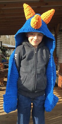 This hooded scarf has a toddler and child size and is easily adaptable to fit other sizes. I used about 300-400 yards of the main color and around 50 yards (or less) of the contrasting color. I hope you enjoy this pattern!