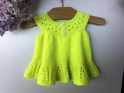 Trinny is a lovely dress, which is completely seamless, top-down. This will grow with your little girl into a tunic top, has a lot of positive ease and the length can easily be adjusted. Trinny looks great over a long sleeve shirt and tights for winter and as a dress in the summer. The lace hem is written and charted.