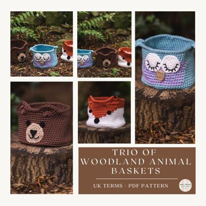 PATTERN: Downloadable Crochet Pattern - Trio Of Woodland Animal Baskets.