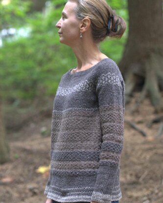 Simple raglan sweater with some colorwork and texture sections to keep your knitting entertaining.