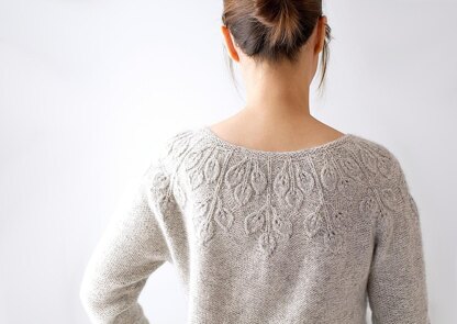 With an eye-catching leaf design for the circular yoke and no-purl Reverse Stockinette for the body and sleeves, Trisha makes for a beautiful sweater that is delightful to knit and to wear. The top-down pullover is worked seamlessly and in the round, with simplified short rows to raise the back neck for a comfortable fit.