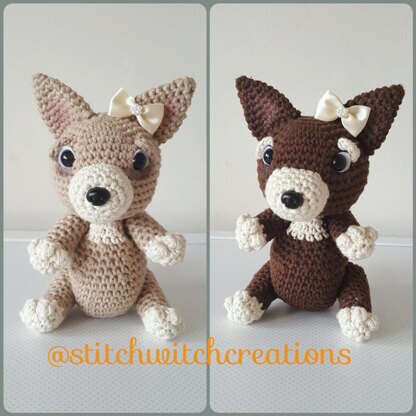 These 2 little cuties are named Trixie and Cocoa and are roughly 7" tall when standing. This 5 page written crochet pattern is in English using UK crochet terminology and includes detailed instructions with photos to guide you through the pattern. The pattern is for both dogs and includes the colour changes for each Chihauhau.