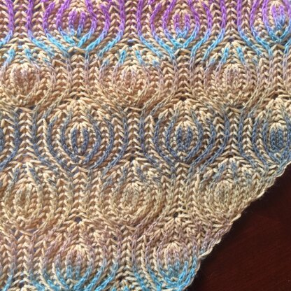 Beautiful 2 coloured lacy triangular shawl knitted in Brioche stitch in a 16 stitch repeated pattern that gives a beautiful floral array. The knit assumes knowledge of the Brioche knitting and the abbreviations used. I have included some basic information in the pattern and a photo explanation of the more complicated 4 stitch decrease. More information can be found on-line in various youtube videos which you can find on my web site on the 'learn to brioche' page