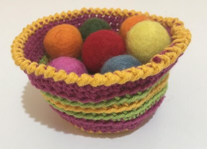 This crochet pattern is for a quick to make bowl with bright tropical stripes. The bowls are perfect for storing your crafty bits and pieces or using around the house as a tidy place to store keys, pens etc.