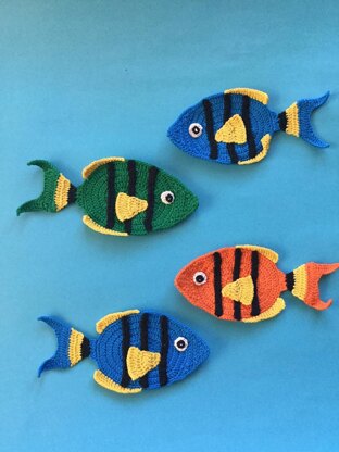 I used blue, black, yellow and a very small amount of white 4 ply crochet cotton.