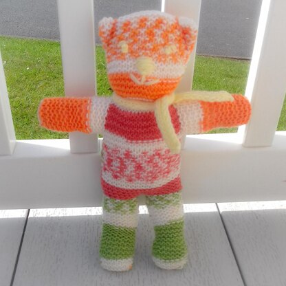 This is a hand knit PATTERN for a cheerful teddy bear, easy to knit in garter stitch.