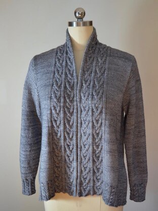 Wrap yourself in this cozy cardigan, featuring an elegant cable collar that hugs the neck and a gently curved hem for extra length in the back. Subtle A-line shaping and set in sleeves complete the classic look.