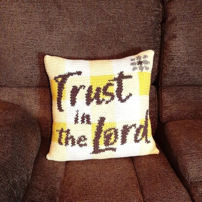 (1) crochet pattern for a "Trust in the Lord" Pillow. Made with really soft “I Love This Yarn” brand yarn, this inspiring pillow, done in sunny yellows and white, is sure to add an unconscious "pick me up" in the atmosphere of your home! Would be a nice gift for a loved - who doesn't need a little more hope?
